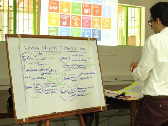 Con el fin de identificar las capacidades institucionales presentes en un territorio, mapear buenas prácticas, reconocer roles de las diferentes organizaciones e identificar los agentes de desarrollo local presentes en diferentes sectores, Antioquia Sostenible desarrolló el insumo metodológico del Ecosistema de actores. Esta metodología, permite reconocer las oportunidades existentes para vincular los ODS a las dinámicas ya presentes en el territorio y que se establezcan alianzas multisectoriales que permitan la focalización de esfuerzos y recursos.